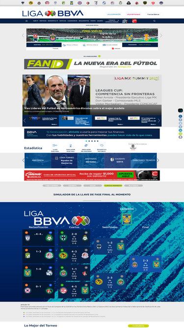 Sitio oficial de liga mx del fútbol mexicano, con partidos, clubes, resultados y estadística en línea, directo desde el estadio.