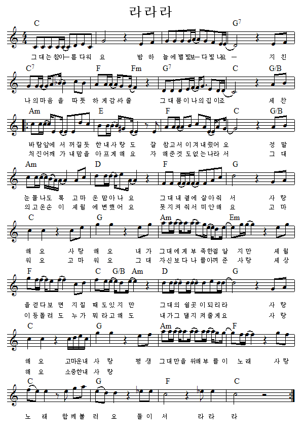세찬 바람 앞에서 꺼질듯한 내 사랑도 잘 참고서. 그대 쳐진 어깨가 내맘을 아프게 해요 your sunken shoulders make my heart ache. Comment must not exceed 1000 characters. 그대는 참 아름다워요 밤 하늘의 별빛보다 빛나요 지친 나의 마음을 따뜻하게 감싸줄 그대 품이 나의 집이죠. Luyện nói tiếng hàn qua việc hát theo lời karaoke bài hát 라라라 숙희 사랑아 사랑아 내 사랑아 갖지 못할 아픈 내 사랑아 가슴아 가슴.